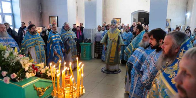 На кануне вечером было совершено Всенощное бдение, а праздничную Литургию в монастыре возглавил Митрополит Курганский и Белозерский Даниил. Служба проходила в новопостроенном главном храме святой обители.